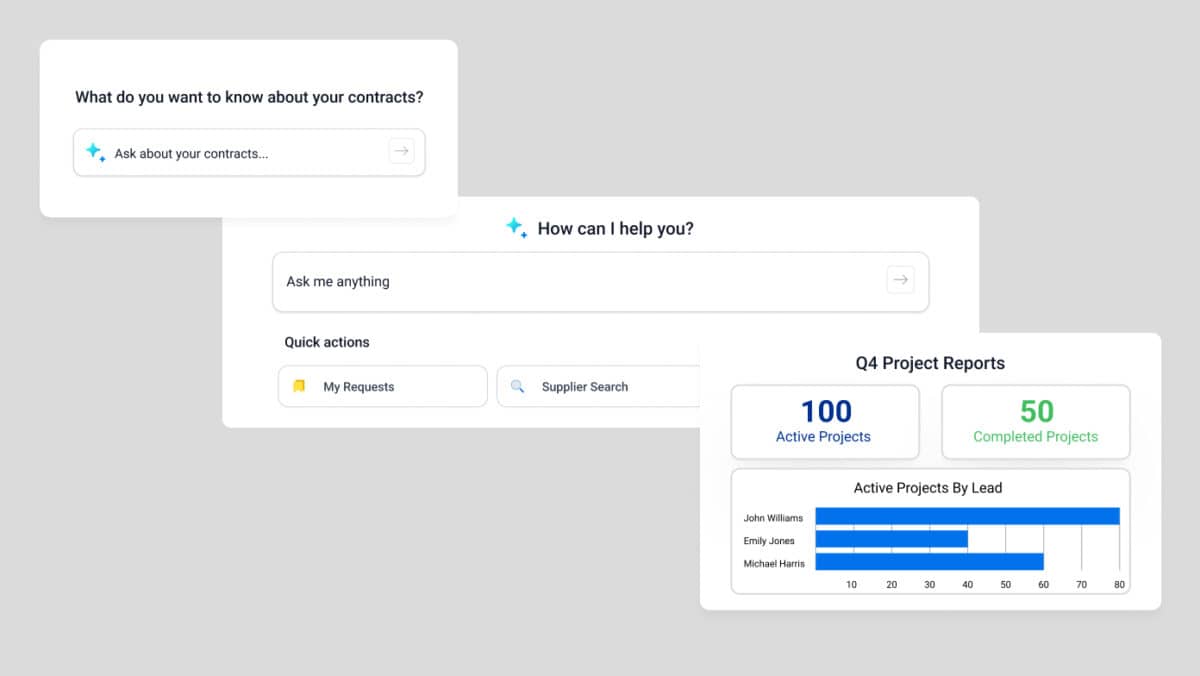 Streamline intake, sourcing, contracts, and project pipeline on a platform built to harness the power of AI from day one.